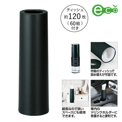 インテリアにもなじむスマートなボトルタイプのティッシュケース。どこにでも置きやすく繰り返し使える。