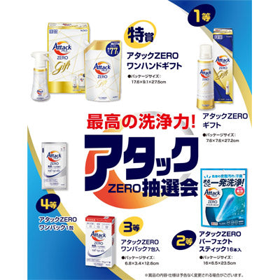 手軽さと高い洗浄力で人気のアタックZERO各種をラインナップしました。いつの時代も人気のアタック!抽選くじ・くじ箱などの付属品もセットになっているので、納品後すぐにイベントが開催できます。