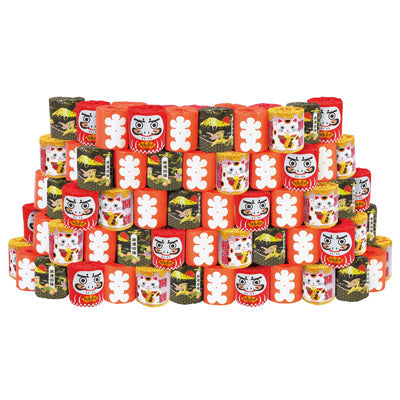 大きなサイコロを振って出た目の数だけトイレットペーパーをゲット!30cm角の大きいサイコロをお客様に振って頂き、出た目の数だけトイレットペーパーをプレゼントする参加型イベント。お正月向けデザインのトイレットペーパーは並べて店頭に置くとお客様の目をひきます。