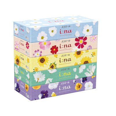 かわいらしいデザインが特徴の i:na(イーナ)。 コンパクトなBOXティッシュの5個パックです。