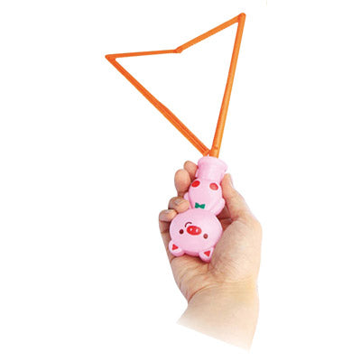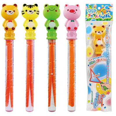 かわいいどうぶつのマスコットが付いたスティックシャボン玉。大きなしゃぼん玉を作ろう!マスコットの付いたスティックを傾けると、パカっと三角形に開いて大きなシャボン玉が作れます。