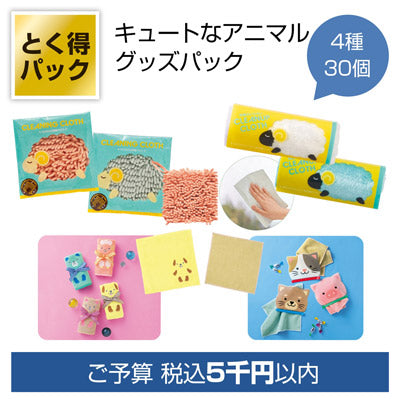 1枚ずつリボンラッピングされた、ぽっちゃりアニマルのかわいいミニタオル♪ お子さま向けの景品やプチギフトにぴったりです。