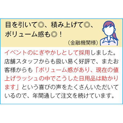 癒し系アニマル・ゾウのトイレットペーパー、多種多様な用途にお使いいただけます!癒し系の動物イラストが可愛いトイレットペーパーです。ゾウの親子を印刷した包装紙で、白無地のトイレットペーパーを1個ずつ包んでいます。イベント会場で積み上げると、インパクトがあるディスプレイとして映えます。季節を問わず...