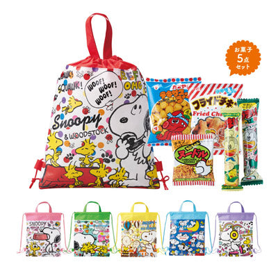人気のキャラクターがデザインされたバッグ。 お子様が大好きなお菓子を5点セットにしました。 バッグはトートとリュックの2通りで使えます。