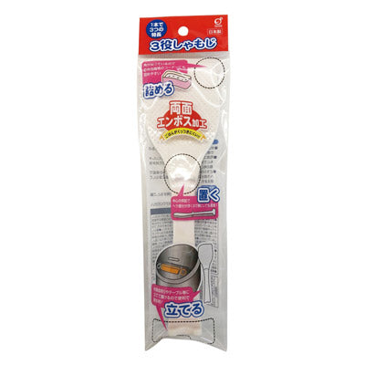 1本で3つの特長があるしゃもじ!炊飯器周りやテーブルなどに立てて置けるので便利で衛生的です。横置きもできます。エンボス加工でご飯が付きにくいしゃもじです。また、角を尖らせているのでお弁当箱の角に詰めやすい仕様です。