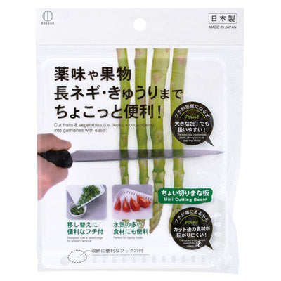 フルーツや薬味、長ネギ、きゅうりなど、食材を少しだけ切りたい時に便利なまな板です。まな板の上下にフチがないフラット設計なので、包丁が扱いやすく、カット後の食材をこぼれ落とさずに寄せ集められるストックスペースがあります。
