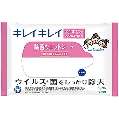 ※【LION10カートン】キレイキレイ除菌ウェットシート10枚入り(ノンアルコールタイプ)