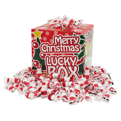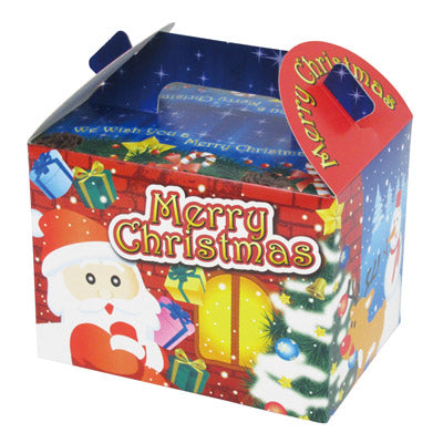 可愛いサンタやトナカイのイラストが目を引くボックス型お菓子セットです。クリスマスシーズンのノベルティに最適な商品です。