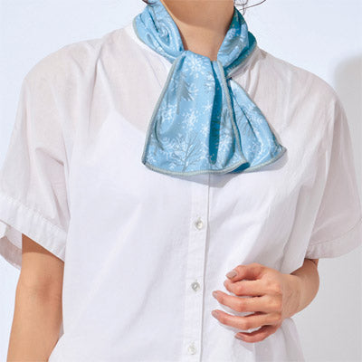 北欧テイストのフォレスト柄と涼しげな雪の結晶がおしゃれな涼感タオル。男女兼用でお使いいただける柄です。