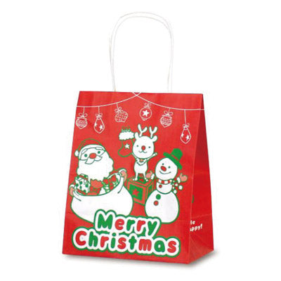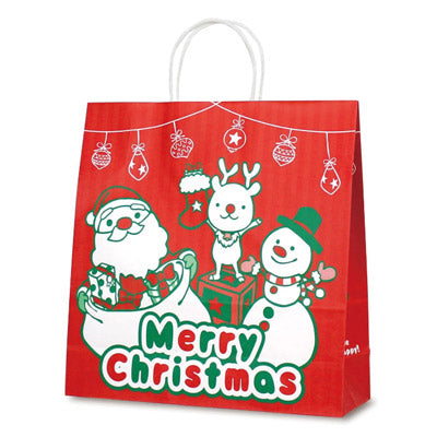 クリスマスシーズンの景品のお渡しに欠かせない紙袋。A4サイズがすっぽり入り、マチも11cmあるので大き目の駄菓子パックなども入ります。持ち手付き。