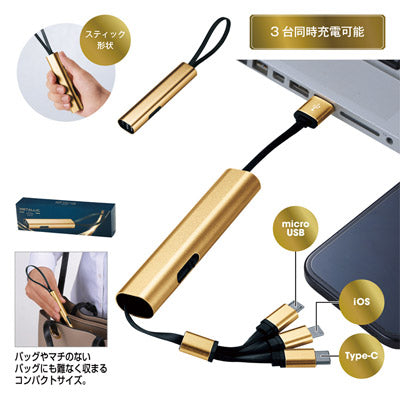 メタリック・3in1マルチケーブル(ゴールド)