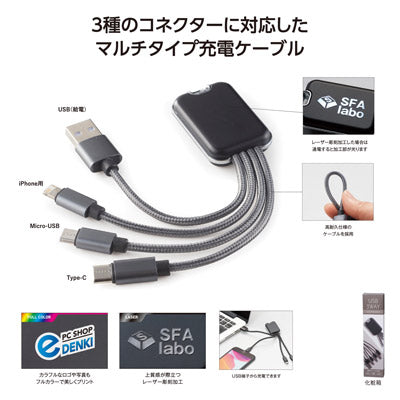 コンパクトで持ち運びに便利なマルチケーブル。1つあると重宝するアイデアグッズです。