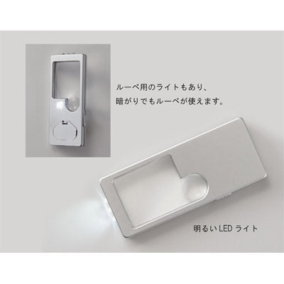 暗がりでも灯りを照らしながらルーペを使う事ができます。懐中ライトの機能もあり、防災用としても使用可能です。