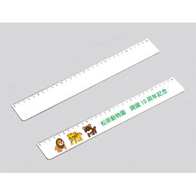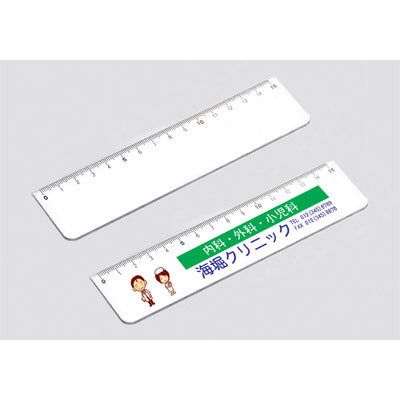 名入れしてPR効果抜群のホワイト15cm直定規です。インクジェットフルカラー印刷もシルク印刷も綺麗に入ります。