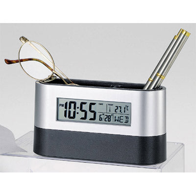 ペンスタンドや小物入れも付いた多機能時計です。