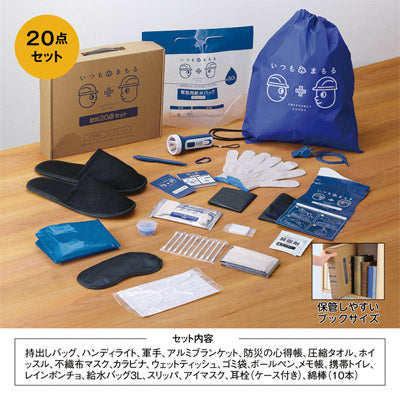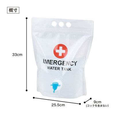 災害時、1人が1日に必要な水分量である3L容量のタンクに、役立つ防災グッズをセットしたので持ち運びにも便利です