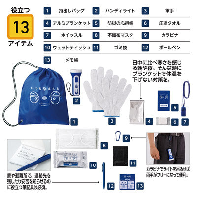 バッグにも入るサイズ感で、充実の7点セット。もしもの時、バッグの中にわんわん隊長がいるだけで心強い!そんな強い味方になれますように