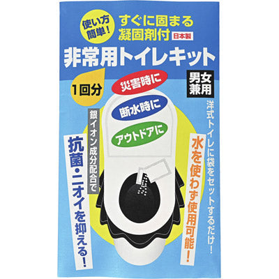 災害時に・断水時に・アウトドアに 男女兼用の非常用トイレキットです。キット内容:排出物処理用袋2枚、凝固剤1袋