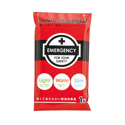 車や自宅、職場で役立つ軽量・コンパクトなアルミブランケット。極薄シートで、体に巻き付けると身体の熱を反射し、防水・防風性も兼ね備えた保温アイテムです。防災イベントや非常時の備えとしてはもちろん、企業や学校のノベルティとして配布すれば、安全意識を高める一助となることでしょう。
