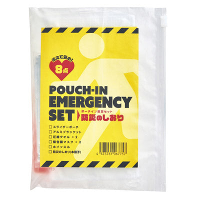 防災の味方!持ち歩きやすい薄型ポーチ入りの8点セットリュックや車のサイドポケットなどにサッと収納できるフラットなポーチに、ブランケット・ライト・ホイッスルなど、もしもの時に役立つ防災グッズ8点を集めたセット。かさばらず携帯性に優れ、外出時の備えや常備用としても活躍します。名入れ対応も可能で、防...