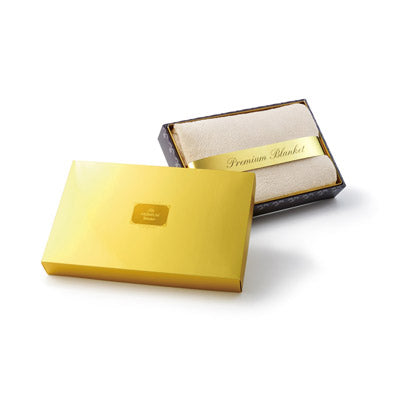 大好評のゴールドパッケージ入りのブランケット。ずっと触れていたくなる、なめらかでとろみのある手ざわり デスクワークやリラックスタイムにやわらかなぬくもりを。 ゴールドの帯を巻いて、箱を開けた時の驚きまでもプレミアム。贈答品に最適な身蓋式の化粧箱がその価値をさらに高めます。