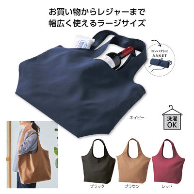 環境意識の高いSDGs向きの大きめエコバッグ。再生生地でありながら上質で柔らかい質感。マチが広くお弁当などを入れるのに最適。