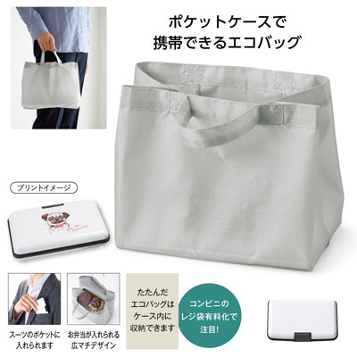 エコバックを広げた際に、付属の収納ケースを ハンドルとして活用できるアイデア商品です。 産業財産権を取得しています。