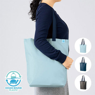 環境意識の高いSDGs向きのエコバッグ。再生生地でありながら上質で柔らかい質感。買い物に便利な大きめサイズ。