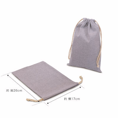500mlペットボトルが入るサイズの販促・ノベルティ向けコットン巾着。【リサイクル生地使用】この製品は、工場で回収した裁断くずなどを再利用して作られています。製造工程上、色むらや異なる糸が混ざることがあります。環境に配慮した、地球にやさしい製品です。