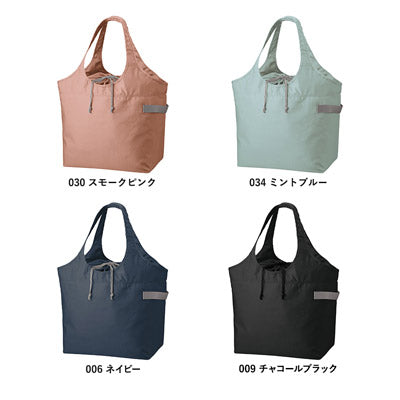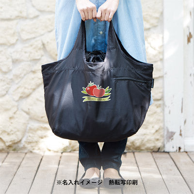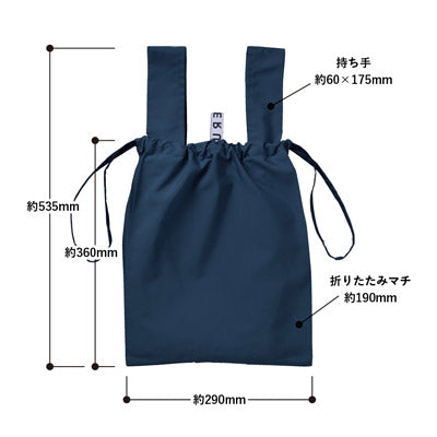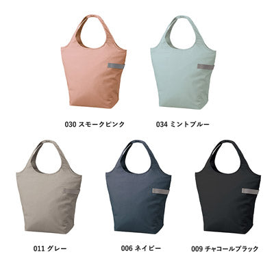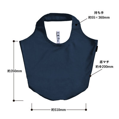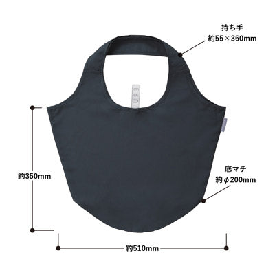 くるりと丸めてゴムバンドでとめると、手のひらに収まるほどのコンパクトサイズで持ち運べるエコバッグです。バッグの容量も十分で、お弁当が入れやすい計算されたフォルムとなっており、ランチタイムの持ち歩きや、お買いものバッグとしても使いやすいサイズです。性別、年齢問わず誰からでも受け入れられるシンプル...