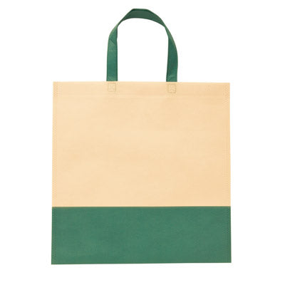 再生PET樹脂製の不織布バッグ。環境に優しい素材で作られています。環境にやさしい再生素材を使ったトートバッグは、マチがないフラットバッグで、ナチュラルな色味と小さくたためる点が特徴です。持ち運びや収納に便利で、A4サイズの資料や書類が縦にも横にも入る正方形のサイズ設計となっています。学校や会社...