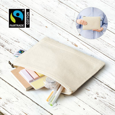 フェアトレードコットンキャンバスフラットポーチ(M) ナチュラル