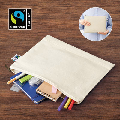 フェアトレードコットンキャンバスフラットポーチ(L) ナチュラル