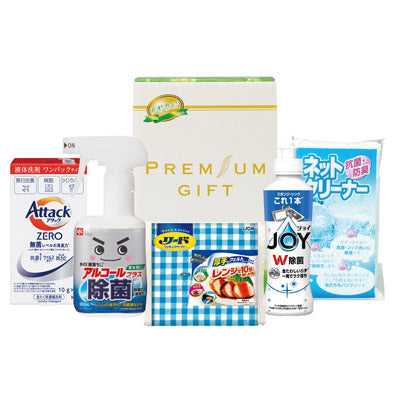 有名ブランドを詰め合わせたボリューム感のあるギフトセット。食器用洗剤や洗濯洗剤などがたっぷり入っている実用性が高いセットになっています。