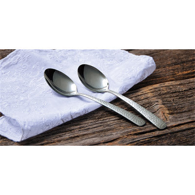 金属製品の名産地・新潟県燕市で作られたいぶし銀の槌目スプーン普段の食事を一段格上げしてくれる、「本物」の風格が漂う逸品です。本体裏面には名産地の証・「Made in TSUBAME」の刻印入り。