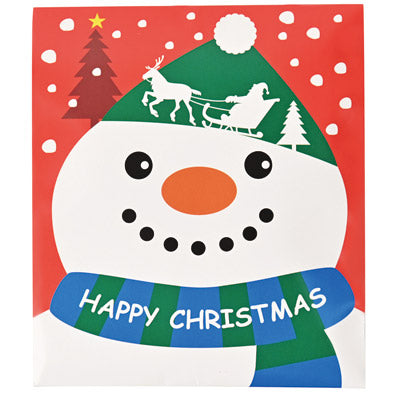 サンタとスノーマンが窓からのぞいている!楽しいパッケージのハンドタオルです。