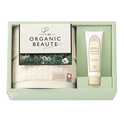 シアバターでしっとり保湿。保湿の王様 「シアバター」の恵みをぎゅっと詰め込んだギフトセットです。タオルは3年以上化学農案や肥料を使っていない農地で栽培され、 有機肥料を使用した人や環境にやさしいオーガニックコットン製。毛羽落ちを減らし、長持ちする甘燃りの糸でロングパイルに織り上げ、仕上げにシア...