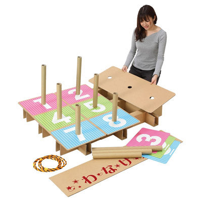 ジャンボサイズの輪投げセット。組み立て式で収納もコンパクト。イベント会場でも目を引くジャンボサイズの輪投げセット。ナンバープレート付きなのでビンゴや色合わせにも使えます。