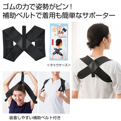 美しい姿勢におすすめ!服の下に装着できる薄型タイプのサポーター 腕を通して肩にかけ、中央のベルトを頭の後ろへ持っていくだけ。位置を調整すればすぐに背筋がピンと伸び、猫背になりがちな肩や背中をサポート。服の下にも目立たず装着でき、オフィスや在宅勤務中でも使いやすい仕様。背筋が伸びることで呼吸が...