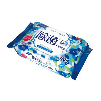 身の回り品の除菌ができるノンアルコールタイプのウェットティッシュ。60枚入で手にやさしいノンアルコールタイプのウェットティッシュ。