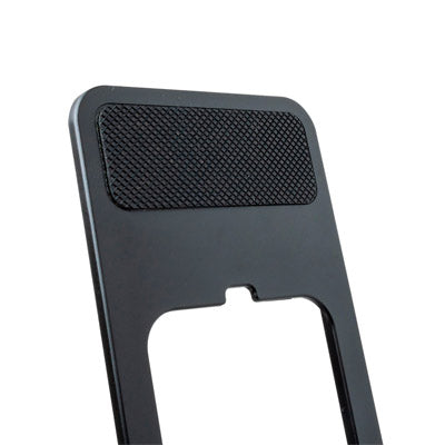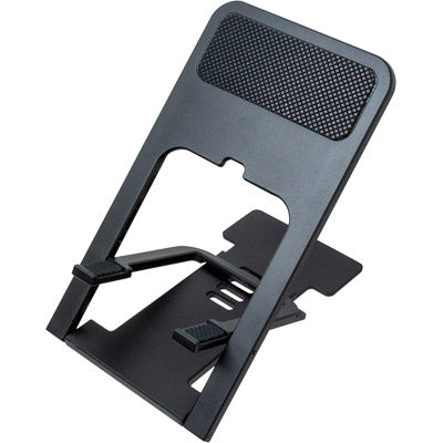 角度を4段階に調節できるモバイルスタンド。 USBコードを差したままでも端末を置くことができ、リモート会議等にも使いやすい仕様です。また、フラットにたたむことで携帯しやすくなります。