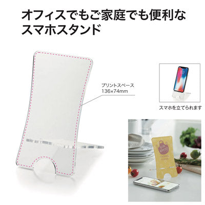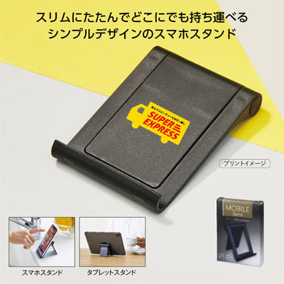 使い勝手のよいシンプル形状のスマホスタンド。 コンパクトにたためるので持ち運びにも最適。 名入れスペースが大きいので訴求効果も抜群です。