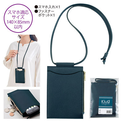 スフィア・リサイクルレザースマホネックポーチ(カードポケット付き)(ネイビー)