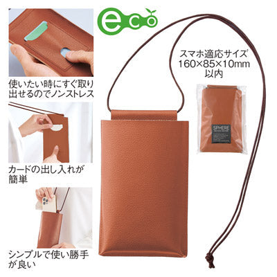 スフィア・リサイクルレザースマホネックポーチ(カードポケット付き)(キャメル)