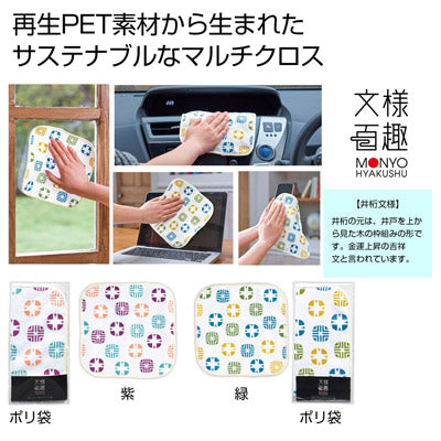 再生PET素材から生まれたサステナブルなマルチクロス 「文様百趣」は古来から受け継がれてきた伝統文様の美しさとメッセージを未来へ伝えるデザインブランドです。 『井桁文様』…井桁の元は、井戸を上から見た木の枠組みの形です。昔は生活に欠かせない水・水源を持っている人が力を持っていました。風水にお...