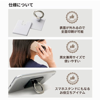 スマートフォン使用時の落下を防止するモバイルリングホルダーに全面にフルカラー印刷の出来るタイプが登場!今や誰でも持っているスマホの外側に付けるリングホルダーは、ファッションアイテムとしての役割も果たしており、オリジナルグッズとして市場の売上も伸びています。スマホの外側に貼りつけるため、PR効果...
