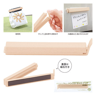 エコ素材のバンブーファイバーを配合した、食品保存に便利なクリップ。冷蔵庫などに貼って使えるマグネット付きでさらに大活躍!