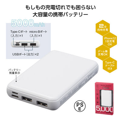 使いやすい5000mAHhのモバイルバッテリー。 旅行や出張だけでなく災害時の備えとしても必須。 2台同時充電やゲーム機の充電にも対応。
