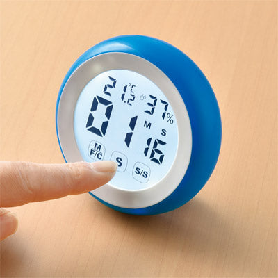 画面タッチで操作可能。気温・湿度の確認もできます。