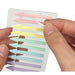 細かい箇所や重要箇所を指し示すのに便利な矢印型ふせんパステルカラー。学生向けノベルティに。やさしいパステルカラーで半透明の為、下の文字などが透けて見えるのも特徴です。パステルピンク、パステルイエロー、パステルグリーン、パステルブルー、パステルパープルの5色が各48枚、計240枚付き。一片約7×44mm 糊部分は矢印の先端側から約23mm